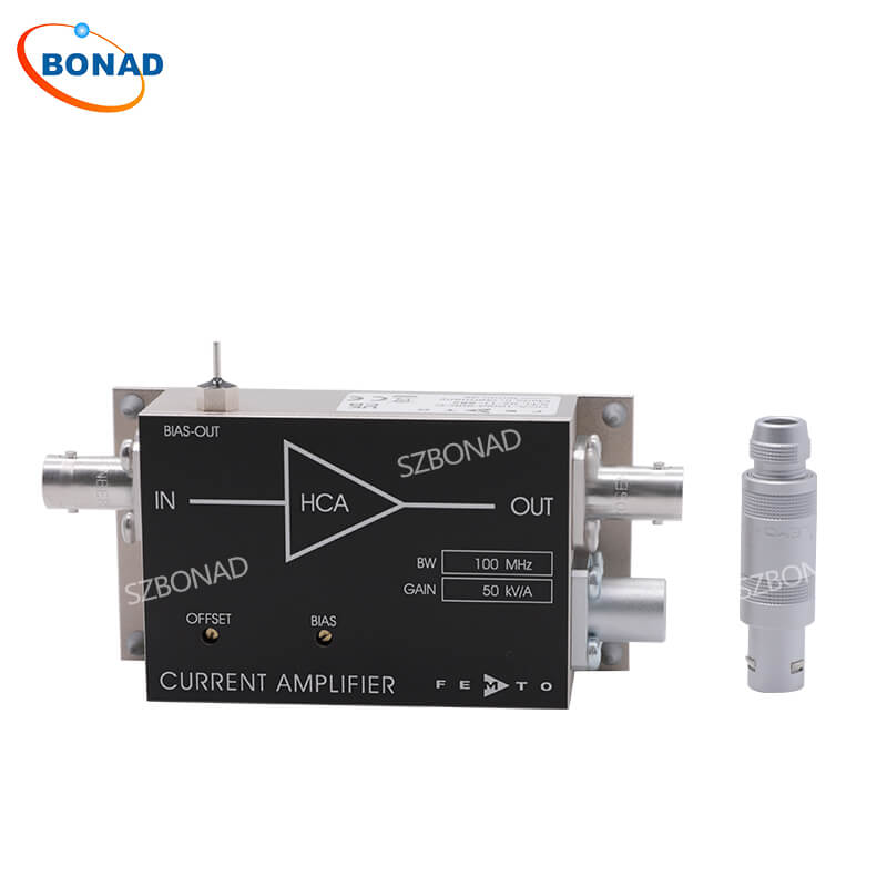 HCA-100M-50K-C 是一款电流/跨阻放大器,适用于测量小电流,带宽处于100 MHz量级。该放大器采用固定增益设计,且针对大带宽应用完成了优化。