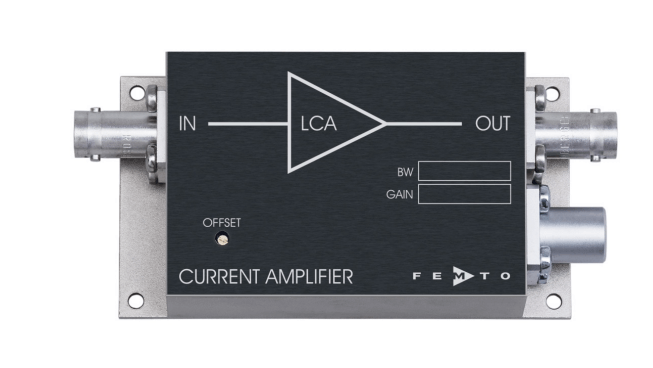 LCA系列为跨阻放大器,适用于测量kHz量级带宽的极小电流。该系列放大器增益固定,经优化可在窄带宽条件下实现高增益。