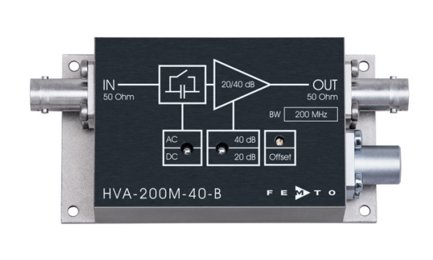 HVA-200M-40-B是一款用于测量微小电压的超低噪声电压放大器,带宽处于200 MHz范围。它们具有 20/40 dB 可调增益,并且可提供50 Ω 输入电阻。