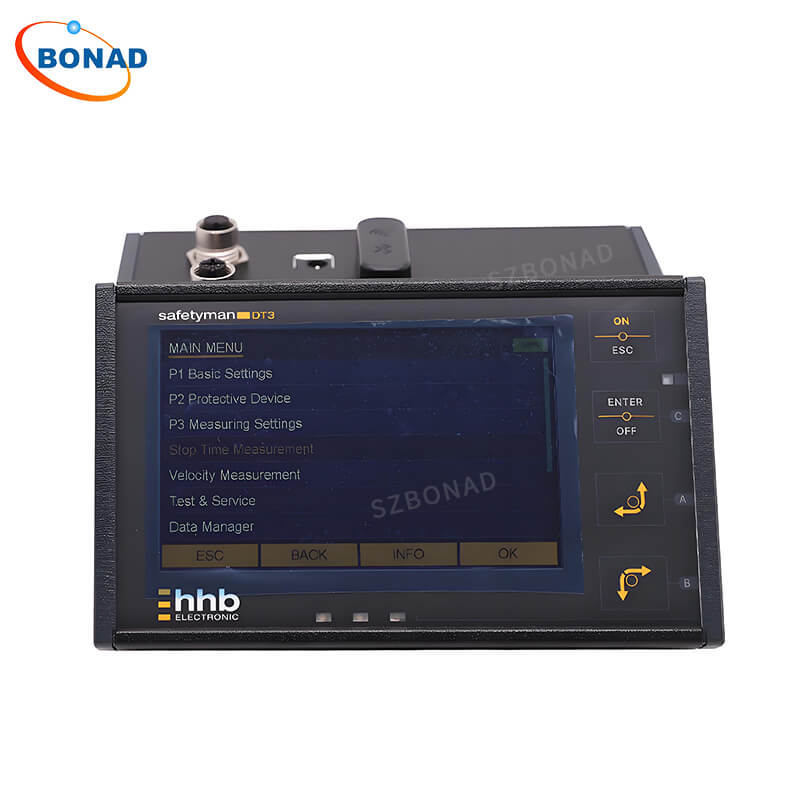 safetyman® DT3 是一款移动式、电池供电的先进停机时间测量设备,适用于配备非接触式防护装置(如光幕和激光扫描仪)以及双手控制和安全门开关的机器。它无需任何电气连接,即可快速便捷地测量各种类型机器的停机时间。测量结果会根据 EN ISO 13855 或 ANSI B11.19 标准自动转换为所需的安全距离。