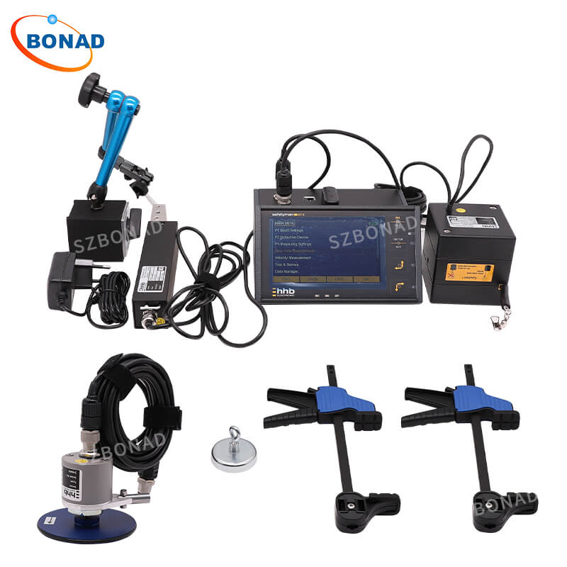 该测量支架可快速简便地安装在您的设备上。内置弹簧系统可提供所需压力。与 safetyman® DT3 型计时仪配合使用时,可测量最高20 m/s的速度。
